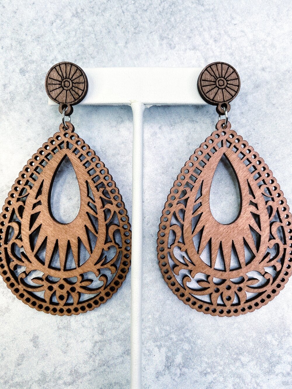After years of torture with heavy earrings, my ears can’t handle anything heavy so these earrings are my way of being gentle on my earrings while not sacrificing style! Super lightweight, these laser cute wood earrings I wear weekly, they are a favorite for sure.