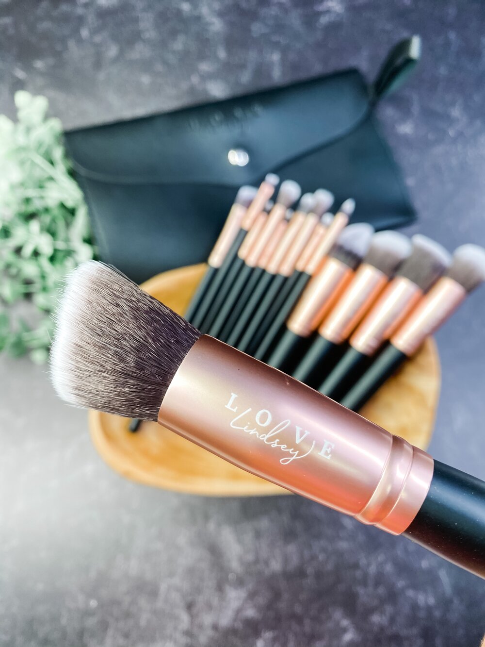 Every girl needs a great brush set and this is it! 14 pieces to help you recreate any look you want and it all comes in its own custom faux leather case so you can take it with your anywhere! Each Love Lindsey Beauty Launch order also comes with a FREE custom glitter makeup pouch as my gift.