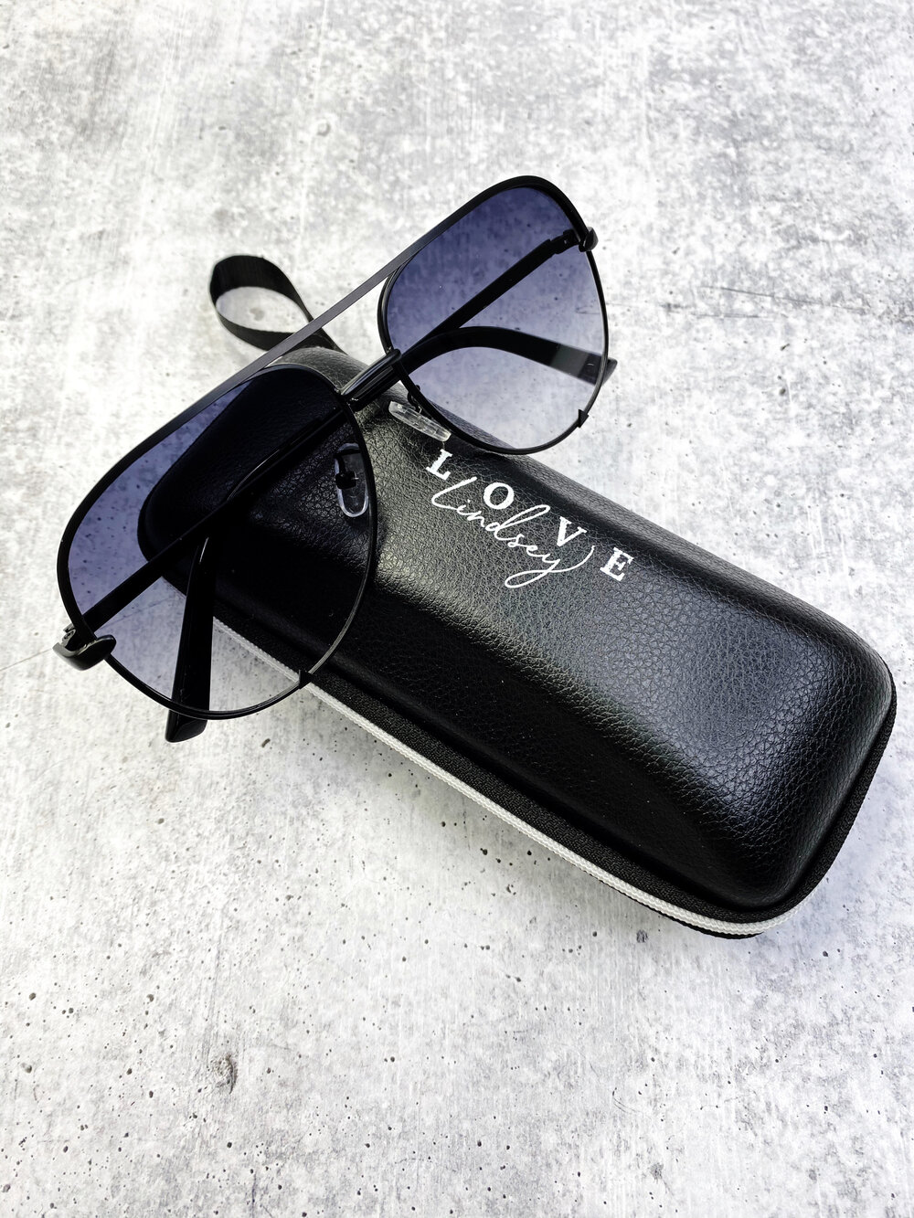 Add to Cart Aviators: Black Ombré Lens and Gold Frame With Case MSRP: Was: Now: $20.00 Classic shape with a modern feel. Each pair comes with a custom Love Lindsey Case!