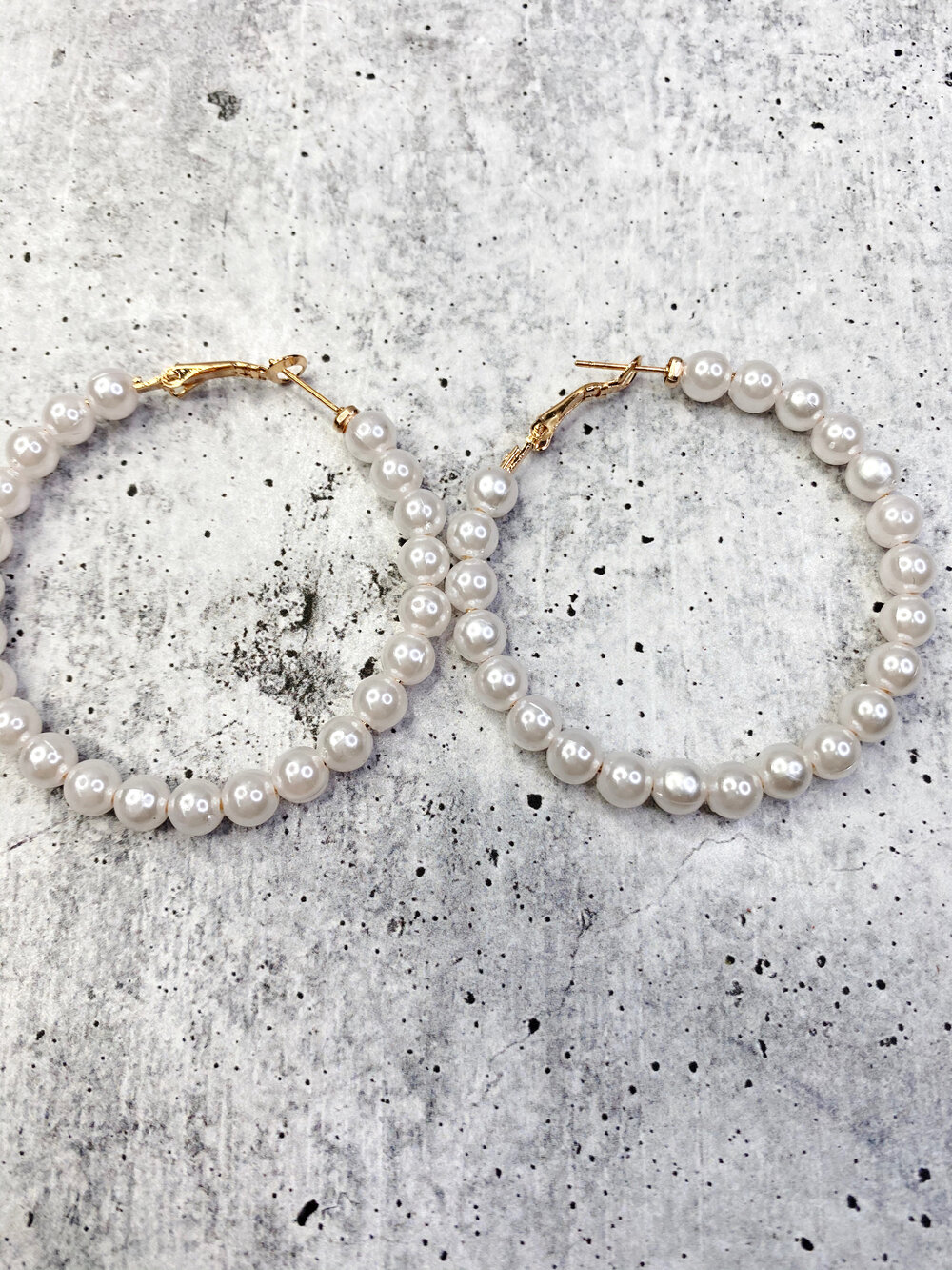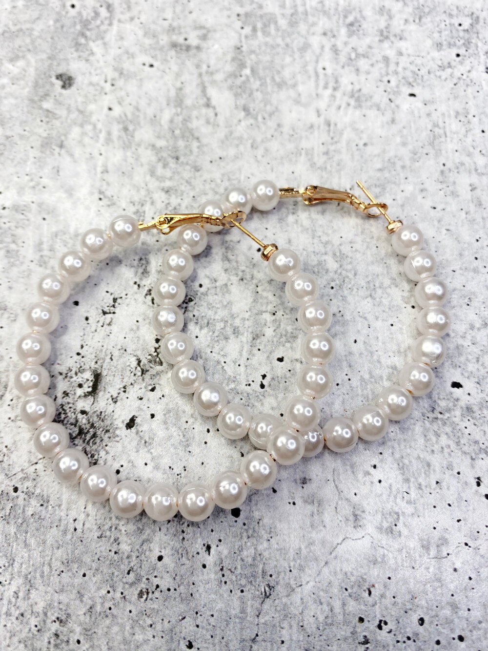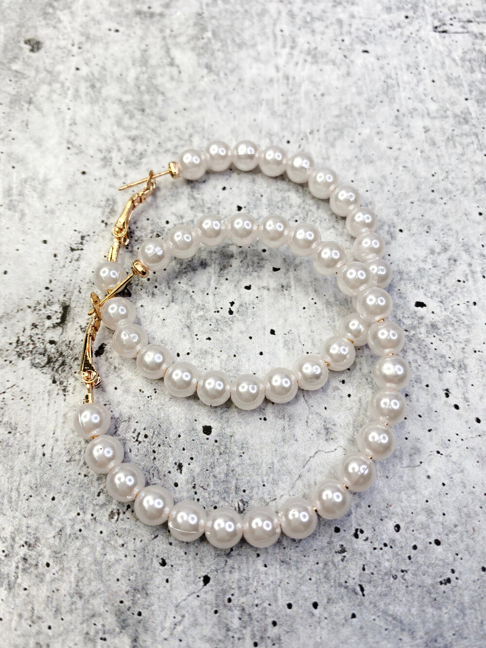 Add to Cart Hoop Earrings: Medium Pearl MSRP: Was: Now: $12.00 Pearls are all the rage, this is a great everyday pair to add that bit of East elegance to any look.
