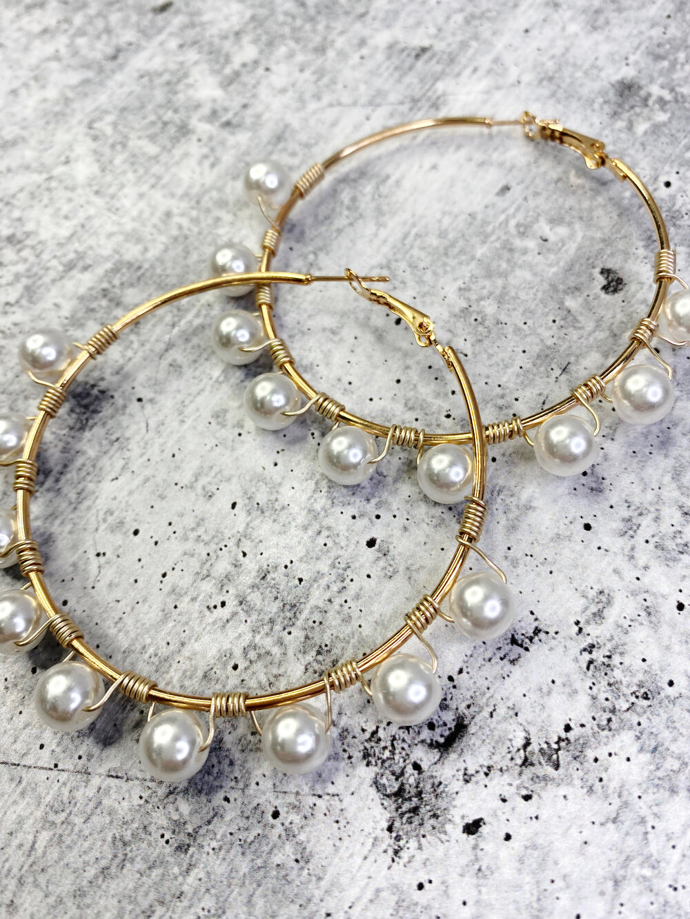 Add to Cart Hoop Earrings: Pearl and Gold MSRP: Was: Now: $12.00 Gold and pearl, all the glam without the weight! I wear this almost daily and get so many compliment…