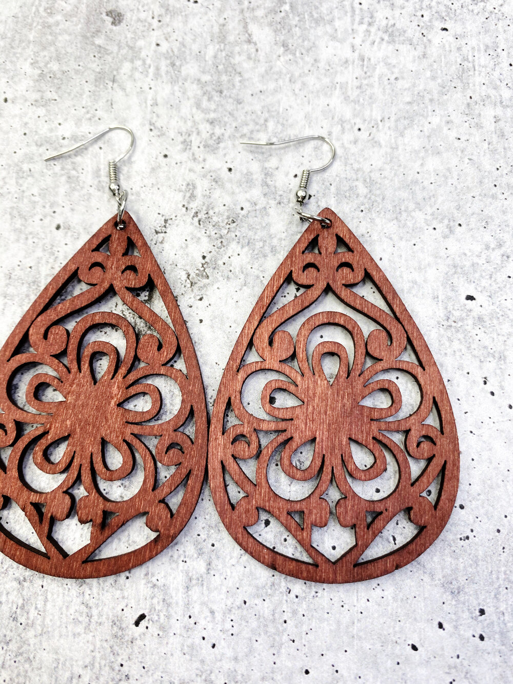 Add to Cart Lightweight Laser Cut Wood Earrings: Teardrop Oak MSRP: Was: Now: $12.00 After years of torture with heavy earrings, my ears can’t handle anything heavy so these earrings ar…